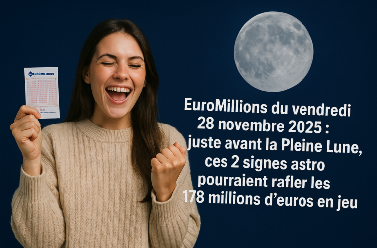 Le tirage EuroMillions du vendredi 28 novembre 2025 fait beaucoup parler. Et pour cause : un jackpot exceptionnel de 178 millions d’euros est en jeu. Alors que le mois de novembre touche à sa fin et que la Pleine Lune approche, certains signes astrologiques se distinguent clairement. Selon les tendances astrales du moment, deux d’entre eux pourraient bien bénéficier d’un sérieux coup de pouce du destin. Le vôtre en fait-il partie ?